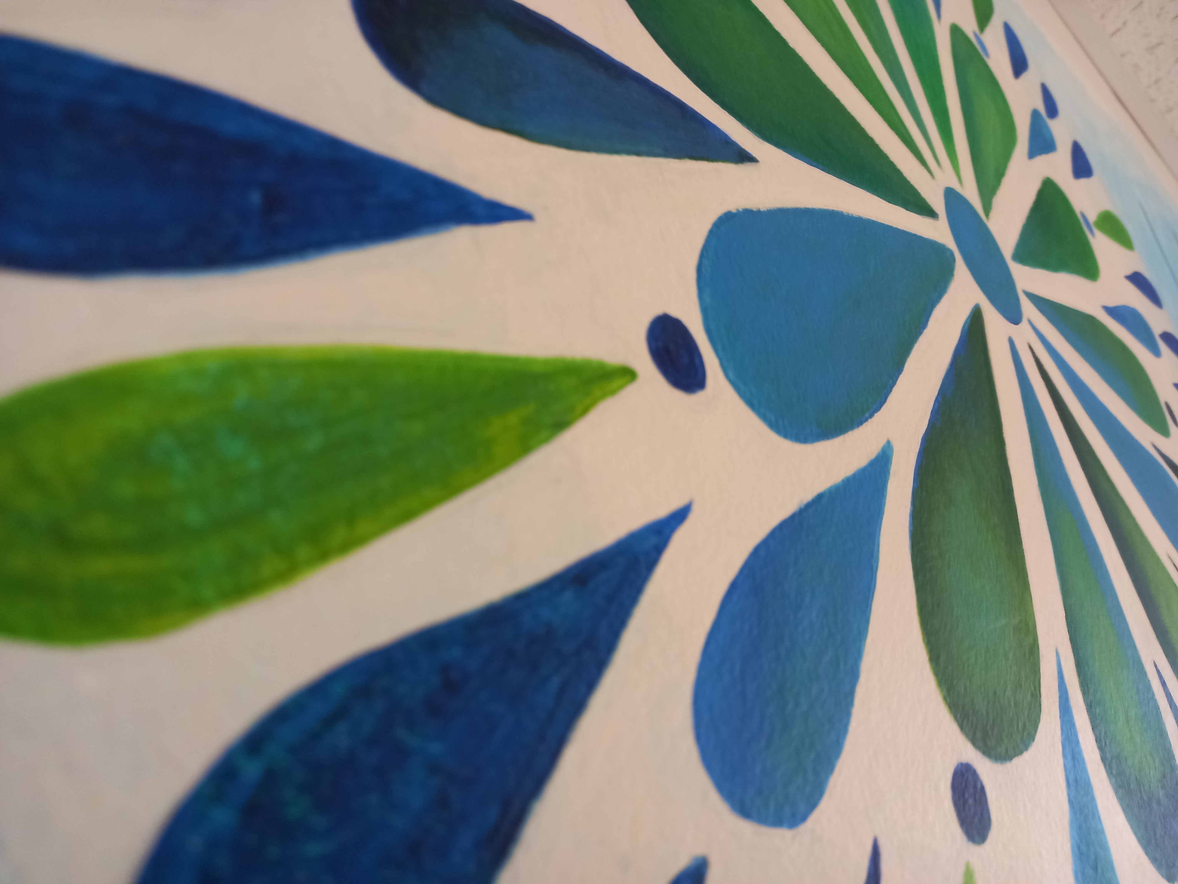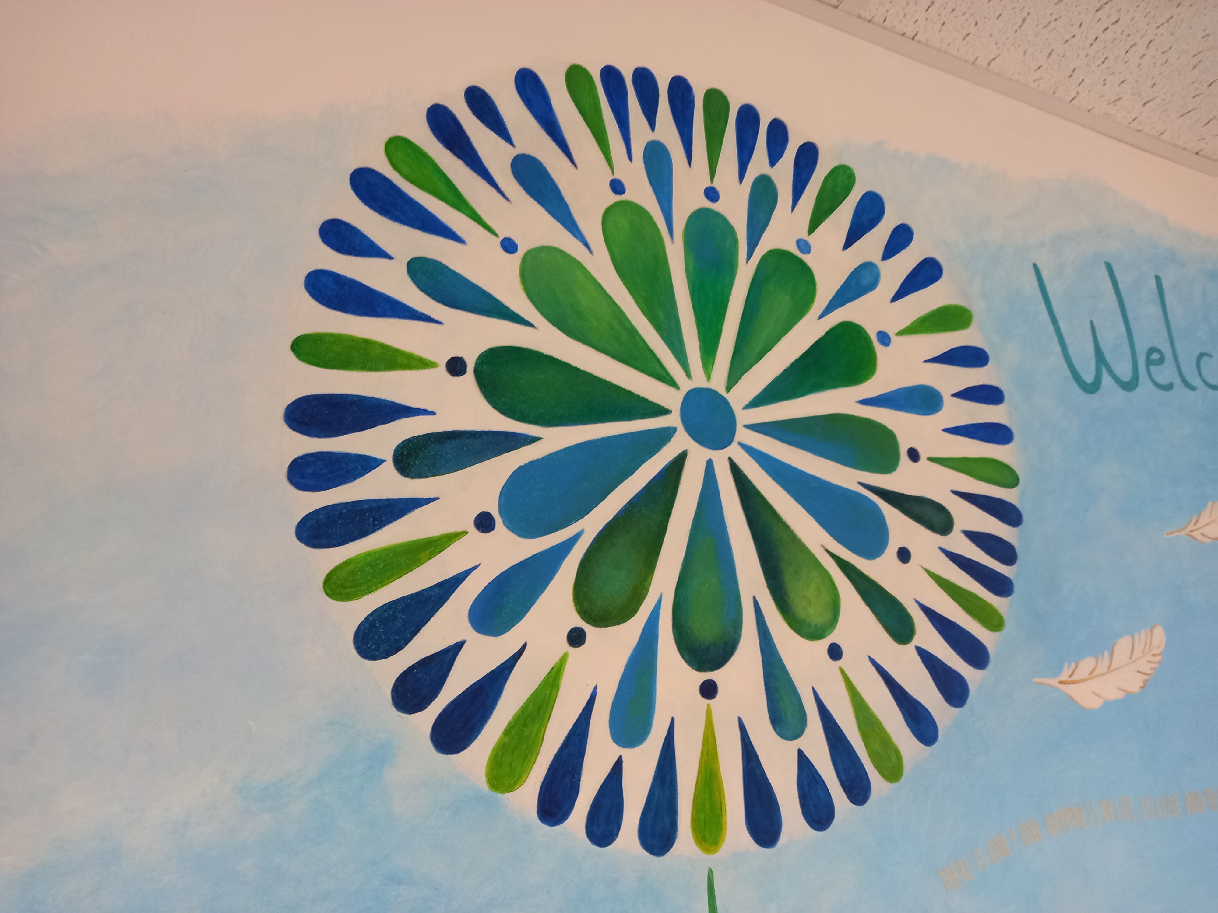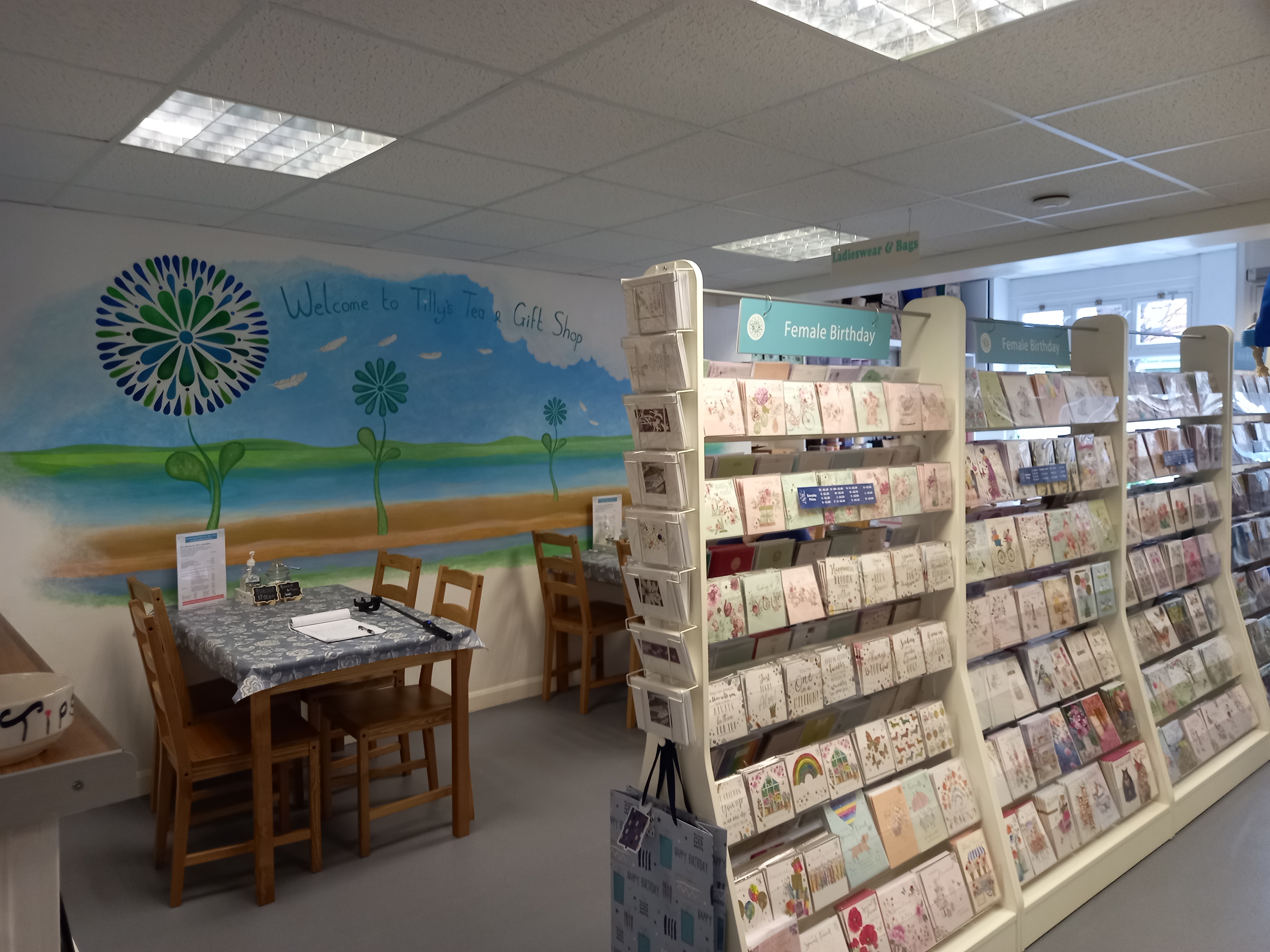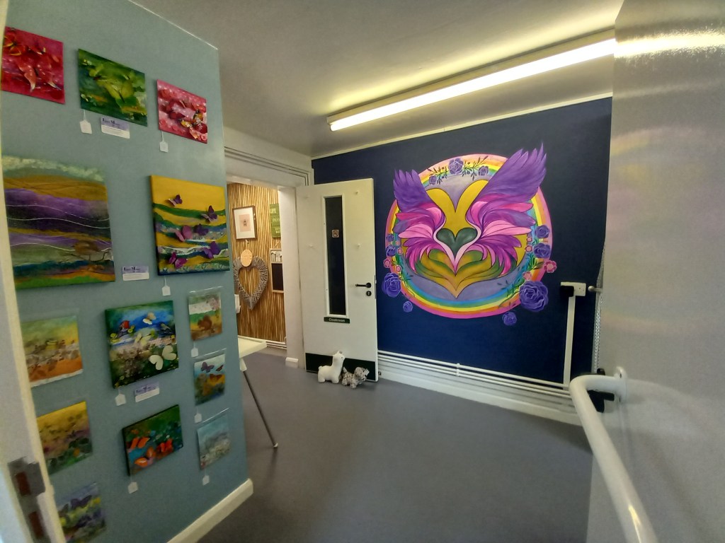 In 2020 Tilly’s Tea and Gift Shop in Metheringham, Lincolnshire, England, moved to a larger shop, where upon I created the main mural in the tea room in the front of the shop, based on the Tillys logo, as a branded mural. This was a gentle inspirational backdrop that coordinated with the colours of Tillys logo that became a giant flower. This mural no longer exists due to new owner.
